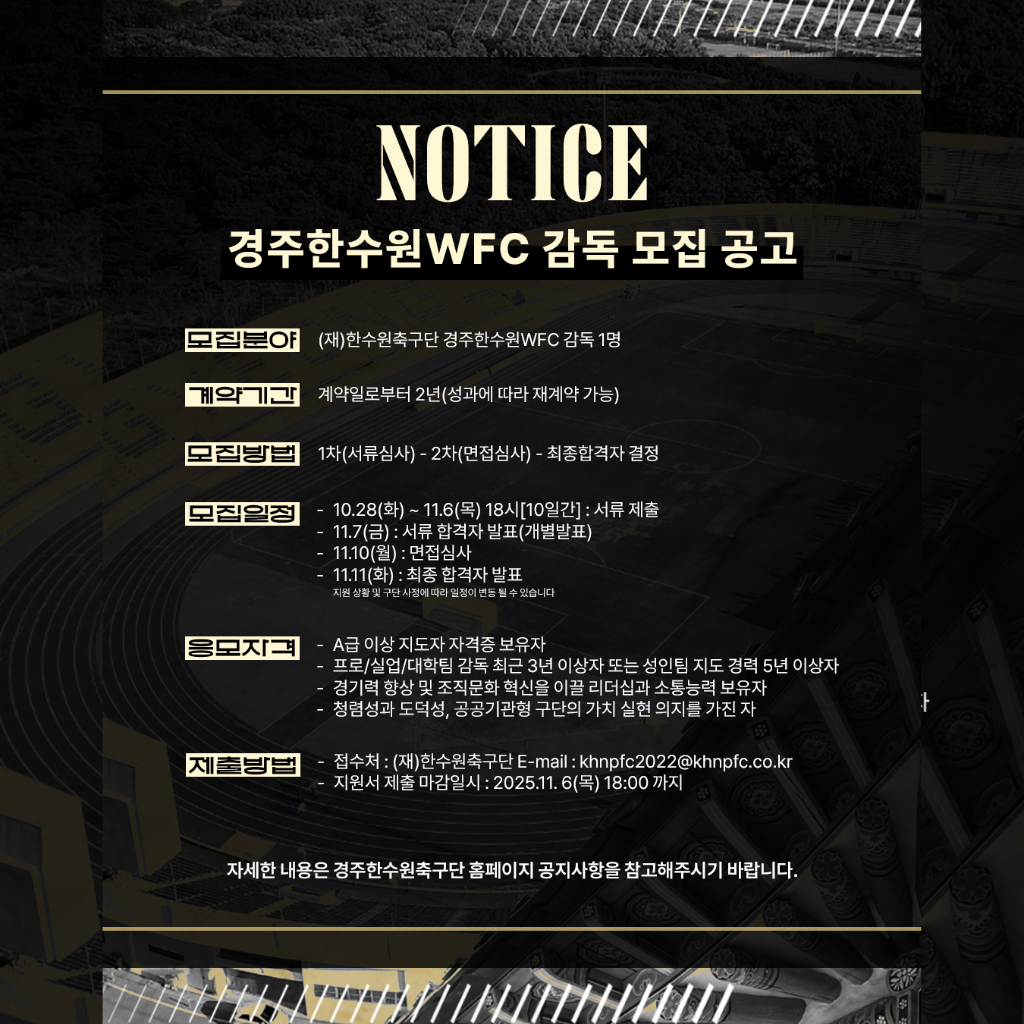 [경주한수원WFC] 경주한수원 여자축구단 감독 모집공고