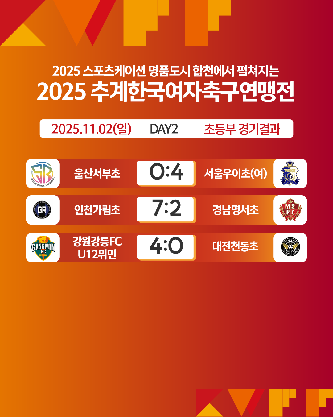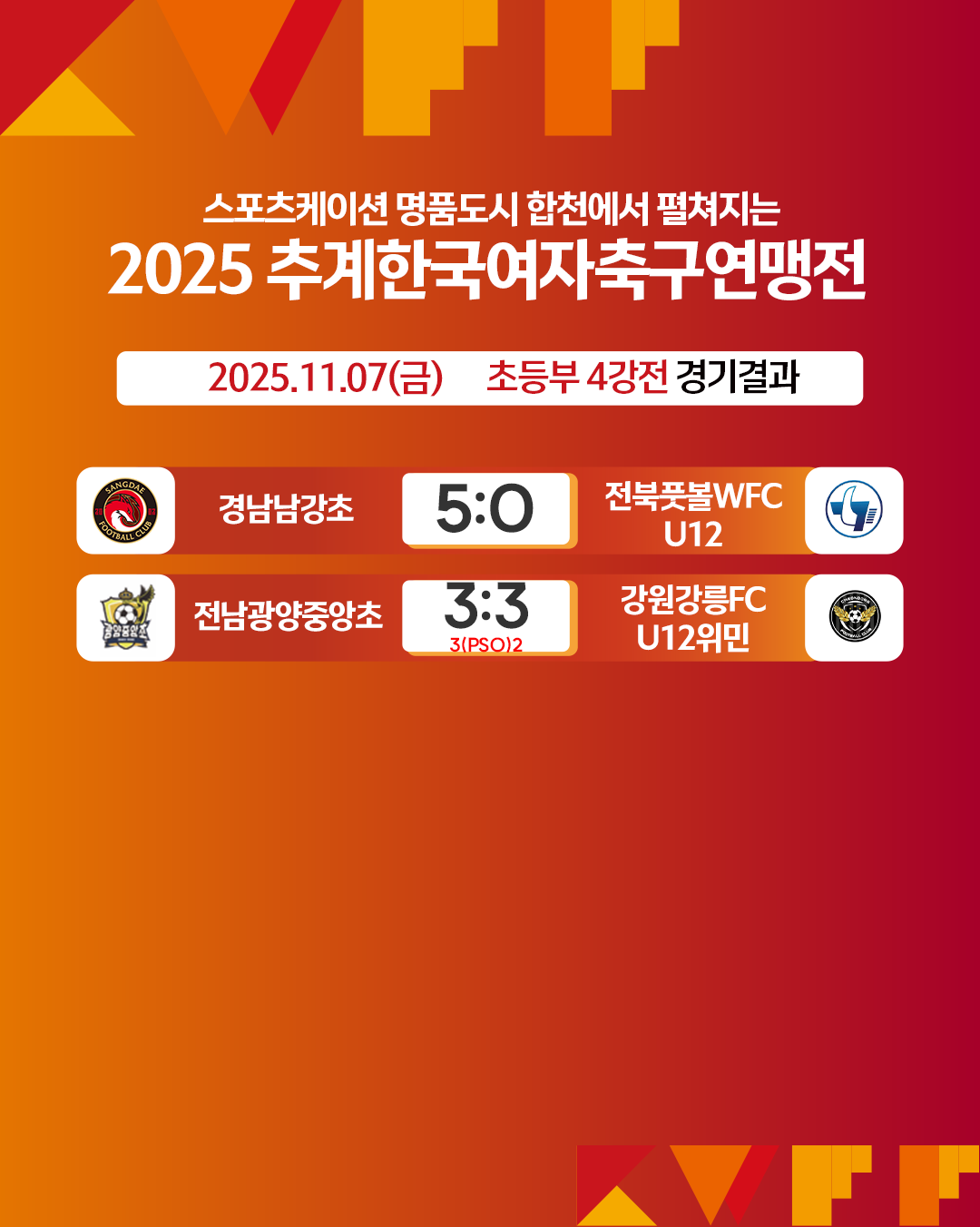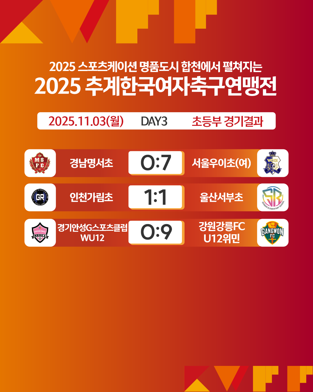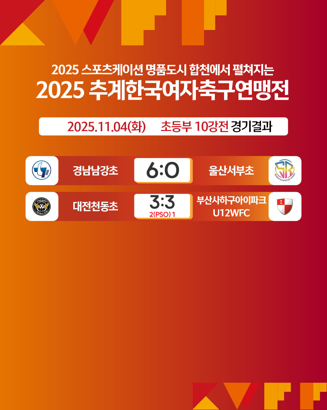 [연맹전] 2025 추계한국여자축구연맹전 경기결과 (초등부)