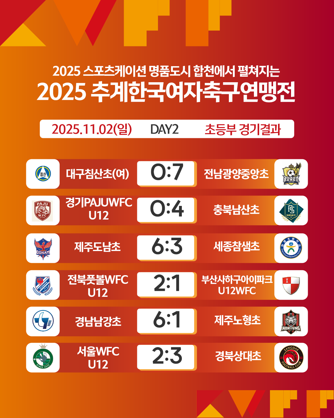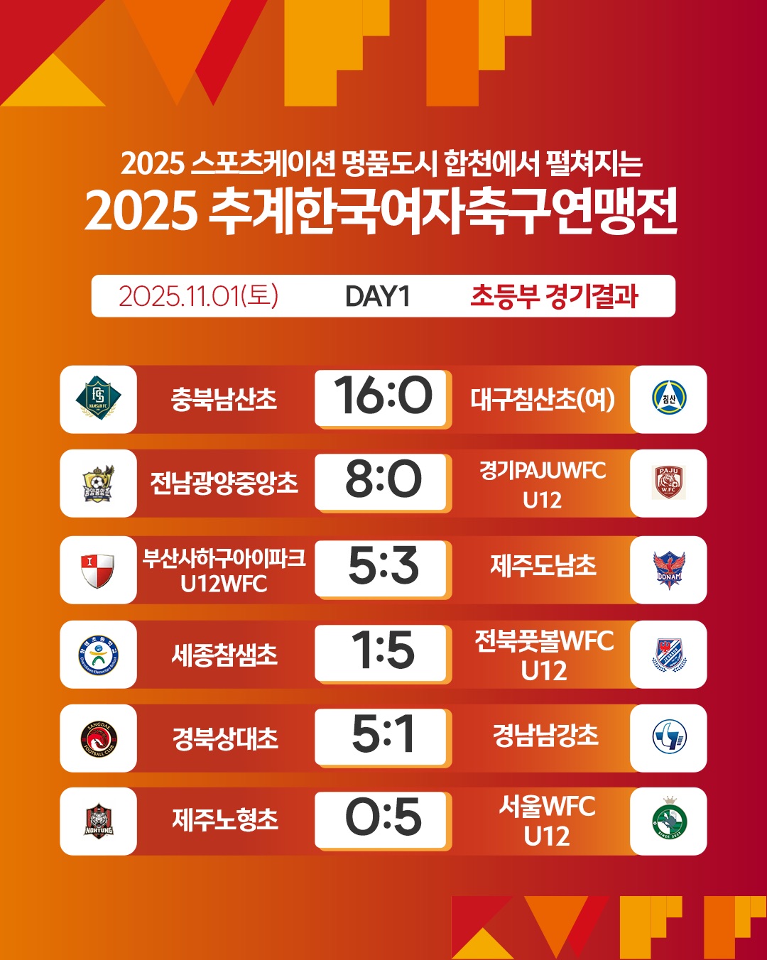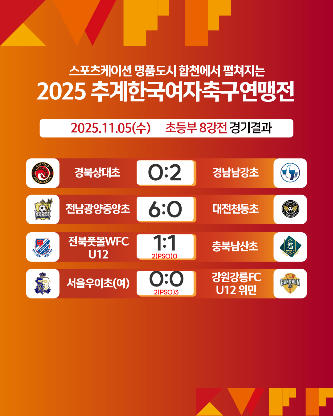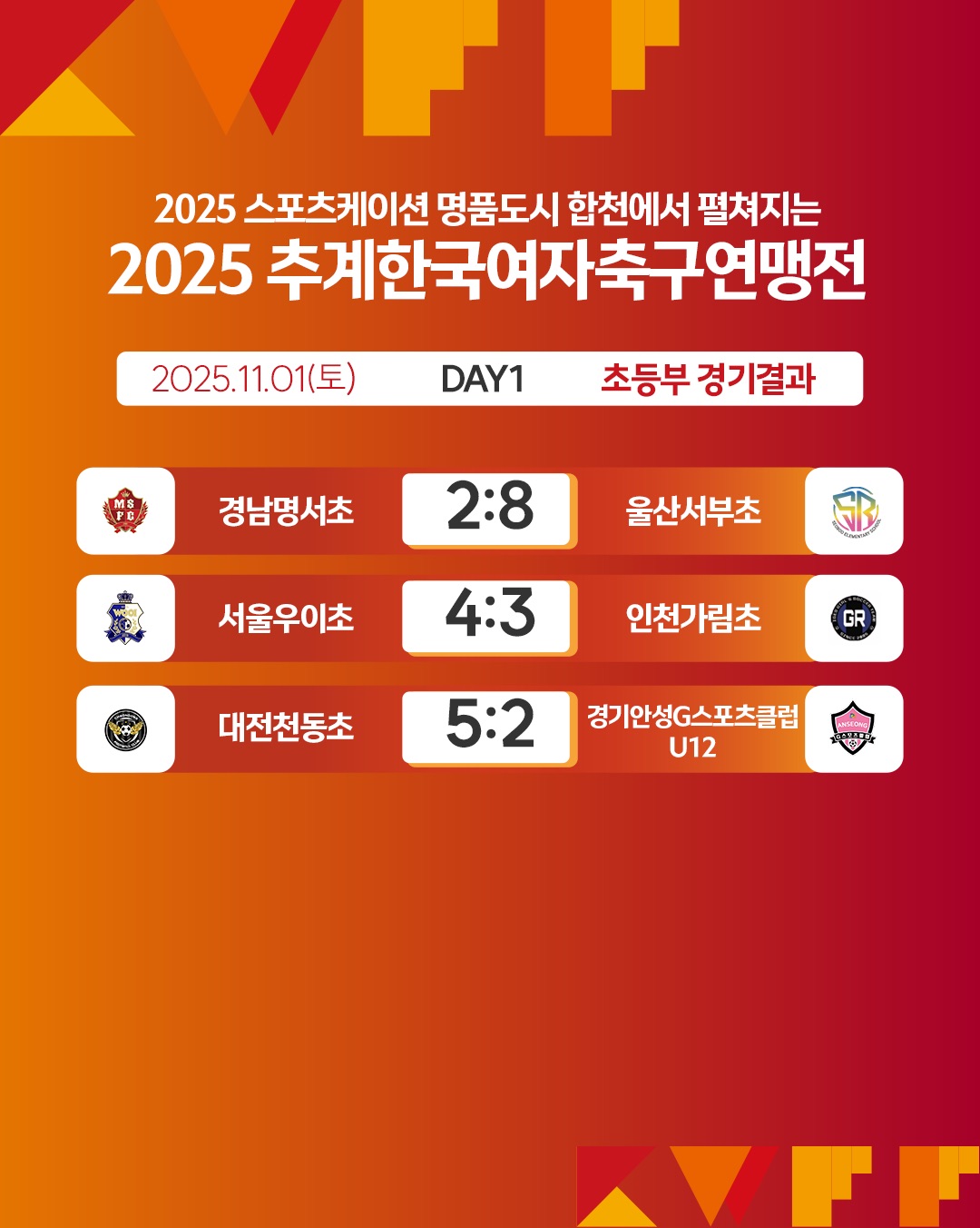 [연맹전] 2025 추계한국여자축구연맹전 경기결과 (초등부)