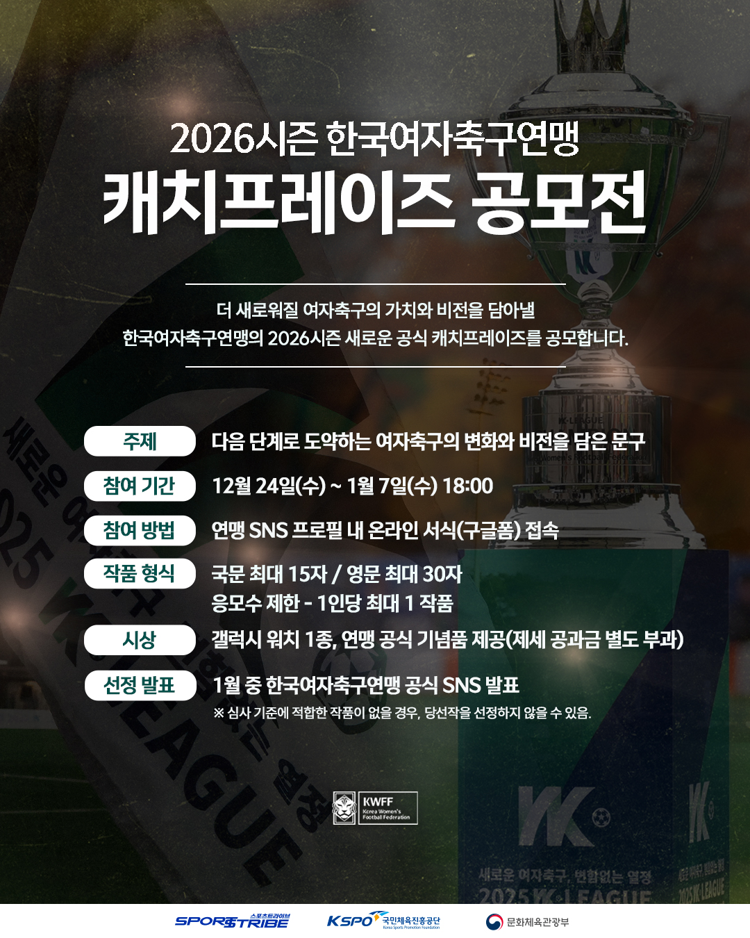2026시즌 한국여자축구연맹 캐치프레이즈 공모전