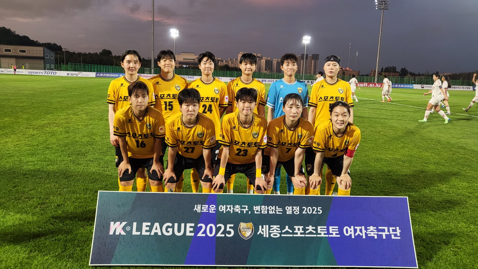 세종스포츠토토 여자축구단(이하 세종스포츠토토)은 수원FC위민을 상대로 3-1 승리를 거두며 홈 팬들을 기쁘게 했다. 세종스포츠토토는 전반 3분 김도연의 크로스를 지선미가 마무리하며 기선을 제압했고 이어 14분에는 지선미의 크로스를 윤선영이 왼발로 마무리하며 점수 차를 벌렸다. 윤선영은 자신의 생일에 의미 있는 골을 기록하며 팀 승리에 힘을 보탰다. 수원FC는 후반 34분 밀레니냐의 크로스를 이영서가 골로 연결하며 추격에 나섰으나, 36분 김도연의 크로스를 수비가 걷어낸 볼을 박혜정이 놓치지 않고 득점해 세종이 다시 달아났다. 수원FC는 끝내 승부를 뒤집지 못했다.
